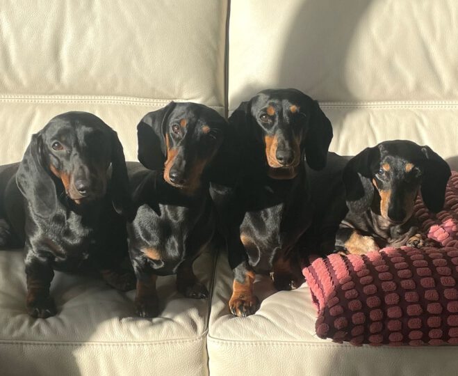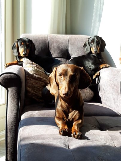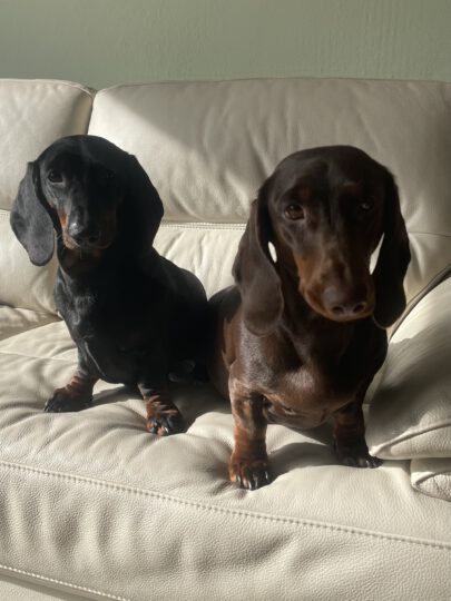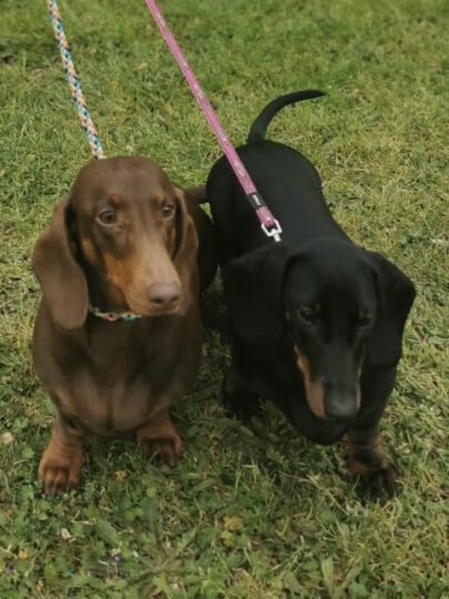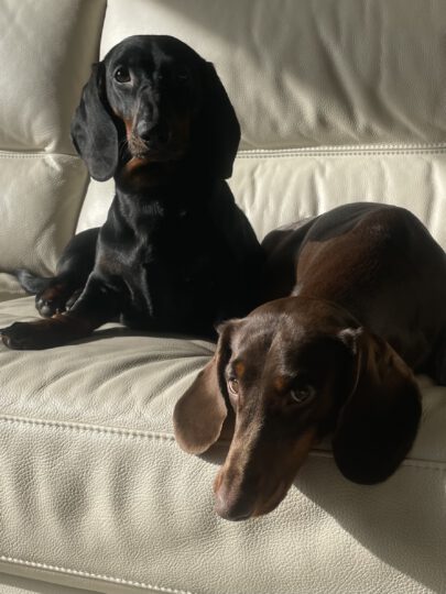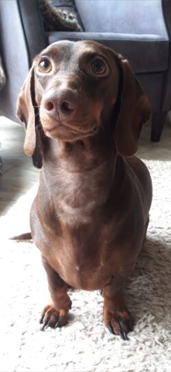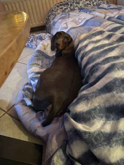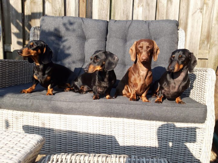 9 Jaar geleden had Urley Sunshine besloten dat wij zijn baasjes mochten worden. Tijdens onze bezoekjes aan huize Black Palace met het nestje van May-Day en Leendert kwam je steeds bij ons liggen om te genieten van alle knuffels en aaitjes. En wij smolten uiteraard voor dat heerlijke chocoladesnoetje. Als 3e teckel kwam je in ons gezin. Onze prachtige, lieve Chocolate and Tan: Brownie. Wat hebben we een geluk en plezier met je gehad. De rust zelve, ook wel ‘De Tamme Teckel’ genoemd mocht je tussen de pootjes van Frutsel lekker slapen. Behalve als je ging spelen met Floortje, dan veranderde je in Floortjes ‘Worst Nightmare’: de Treiterteckel! Want je kon haar plagen als de beste: Met genoeg knaagsels en speeltjes in de buurt moest je altijd die van haar hebben. Tijdens wandelingen was je de beschermheer van de dames en vooral Yara wist daar flink misbruik van te maken. Lokte zij een andere hond uit dan mocht ‘ome’ Brownie het oplossen.