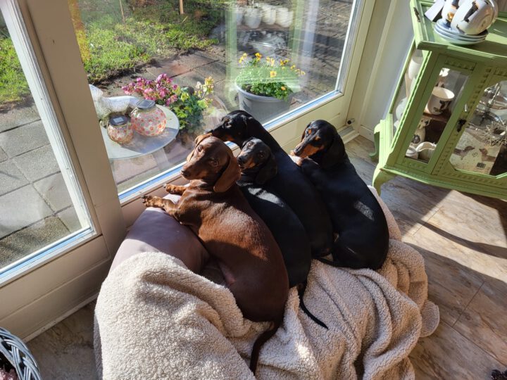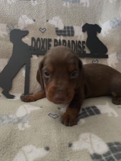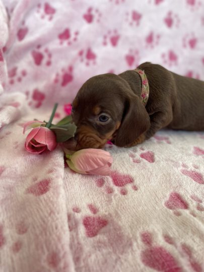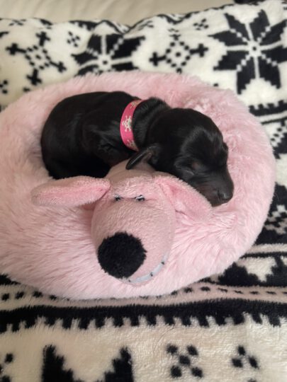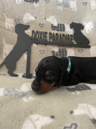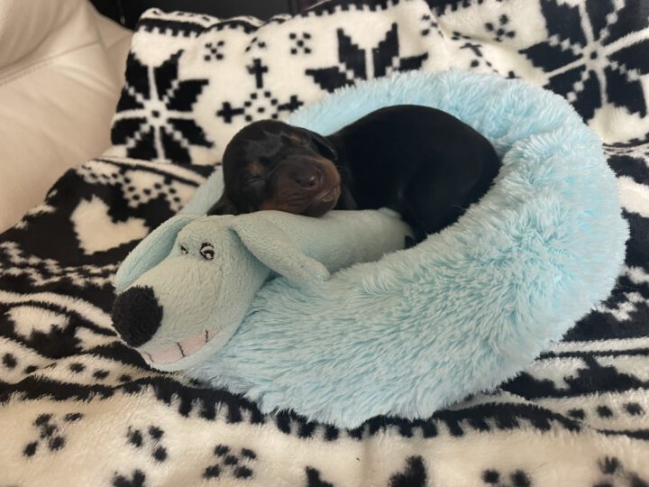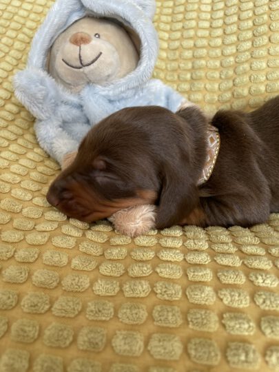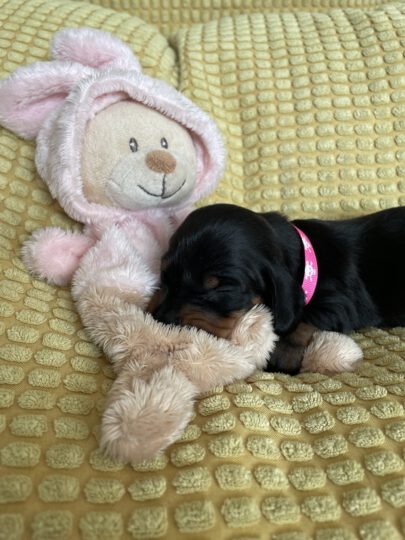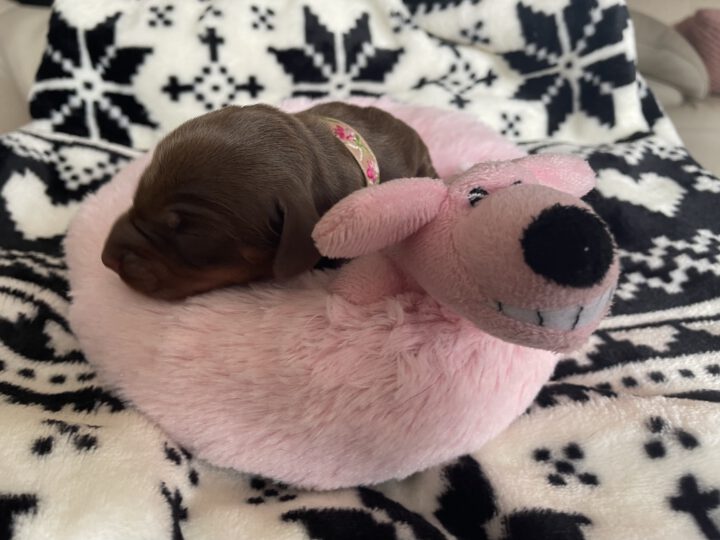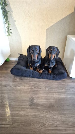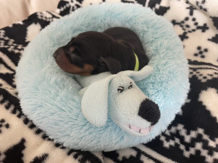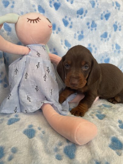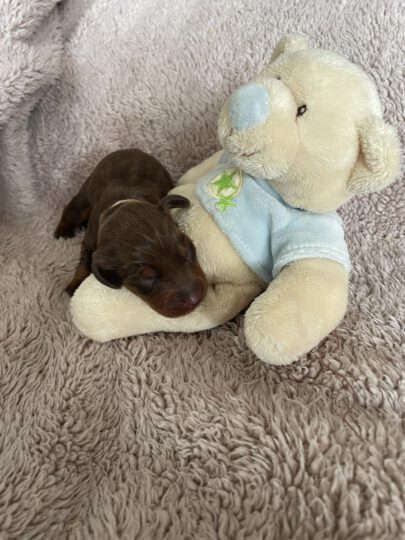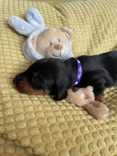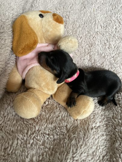 Hier de eerste foto’s van de puppy’s van onze knappe Bl & Tn reu Tomland Teckel Remy PUZZLE voor de insiders; en de eerste uitverkoren Choc & Tn dame is onze Jump For Joy From Black Palace, beter bekend als NOOR (tje) !!